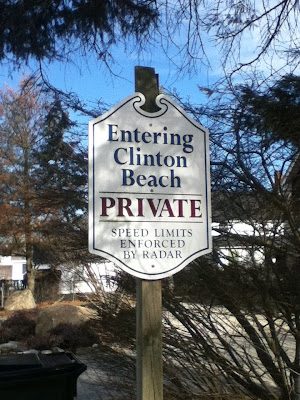 The place I choose to park was a parking lot a fishing area and I was going to walk back to the Madison/Guilford town line and go as far west as I could get. The dirt road top the parking lot was marked "road floods at high tide" and the puddles full of water proved the point. I parked just before the signs there, walked back to the town line and headed along a road that soon ended at the shore with a sign "PRIVATE right of way only" Not exactly sure what that meant.